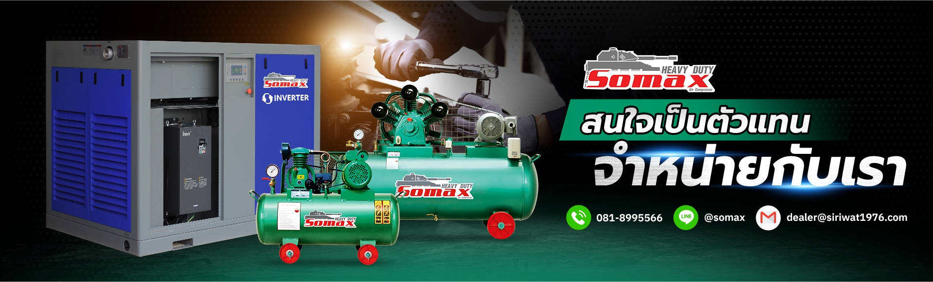 ที่เดียวครบ จบทุกระบบปั๊มลมโรงงานอุตสาหกรรม ผู้จัดจำหน่ายเครื่องปั๊มลม หรือเครื่องอัดลมอุตสาหกรรม อาทิ ปั๊มลมระบบลูกสูบ ปั๊มลมระบบสกรู จากประเทศไต้หวัน เครื่องทำลมแห้ง และแอร์ดรายเยอร์ (Air Dryer) อุปกรณ์ที่ เกี่ยวกับลมจากประเทศญี่ปุ่นซึ่งเป็นที่รู้จักกันอย่างแพร่หลายในอุตสาหกรรมไทย