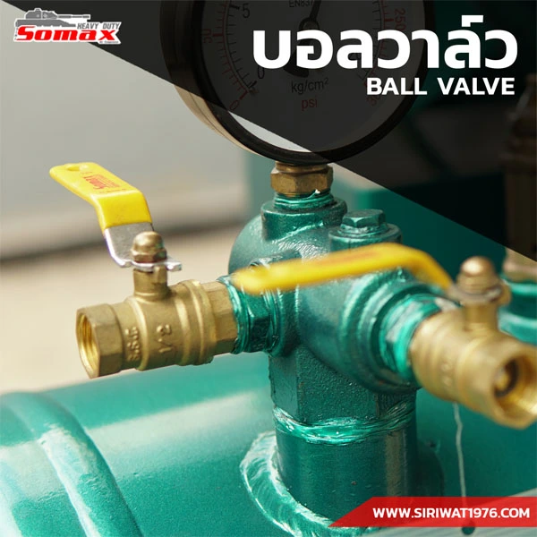 บอลวาล์ว (BALL VALVE) โดยปกติแล้วน้ำกับอากาศจะเป็นของคู่กัน เมื่อปั๊มลมทำงานไปได้สักพักหนึ่ง ก็จะเกิดหยดน้ำภายในถังลม ซึ่งความชื้นสัมพัทธ์ในอากาศประเทศไทยค่อนข้างสูง จึงทำให้น้ำในถังลมเพิ่มขึ้นเร็ว หากไม่ปล่อยน้ำออกจากถังลมก็จะทำให้พื้นที่จุลมลดน้อยลง รวมถึงอาจจะมีน้ำปนเปื้อนออกไปในระบบลม เพราะฉะนั้นต้องหมั่นปล่อยน้ำออกจากถังลมบ่อย ๆ หรือทำทุกวันหลังเลิกใช้งาน วิธีเดรนน้ำออกจากถัง ดูได้ที่ https://www.siriwat1976.com/knowledge-drain-the-water-from-air-tank/