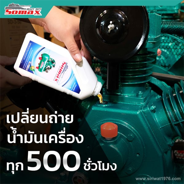 1.) เปลี่ยนน้ำมันเครื่องปั๊มลมทุกๆ 500 ชั่วโมง