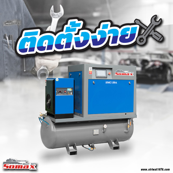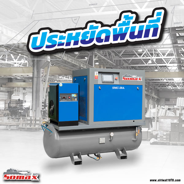 SOMAX Compact Series คือปั๊มลมสกรูขนาดเล็ก ที่มาพร้อมกับอุปกรณ์ลมต่างๆและถังลม มีคุณสมบัติเด่นที่ขนาดเล็ก ผลิตกำลังได้มาก ประหยัดพื้นที่ และให้เสียงที่เงียบขณะปฏิบัติงาน จึงเป็นปั๊มลมสกรูที่ตรงกับความต้องการของ SME นั่นเอง