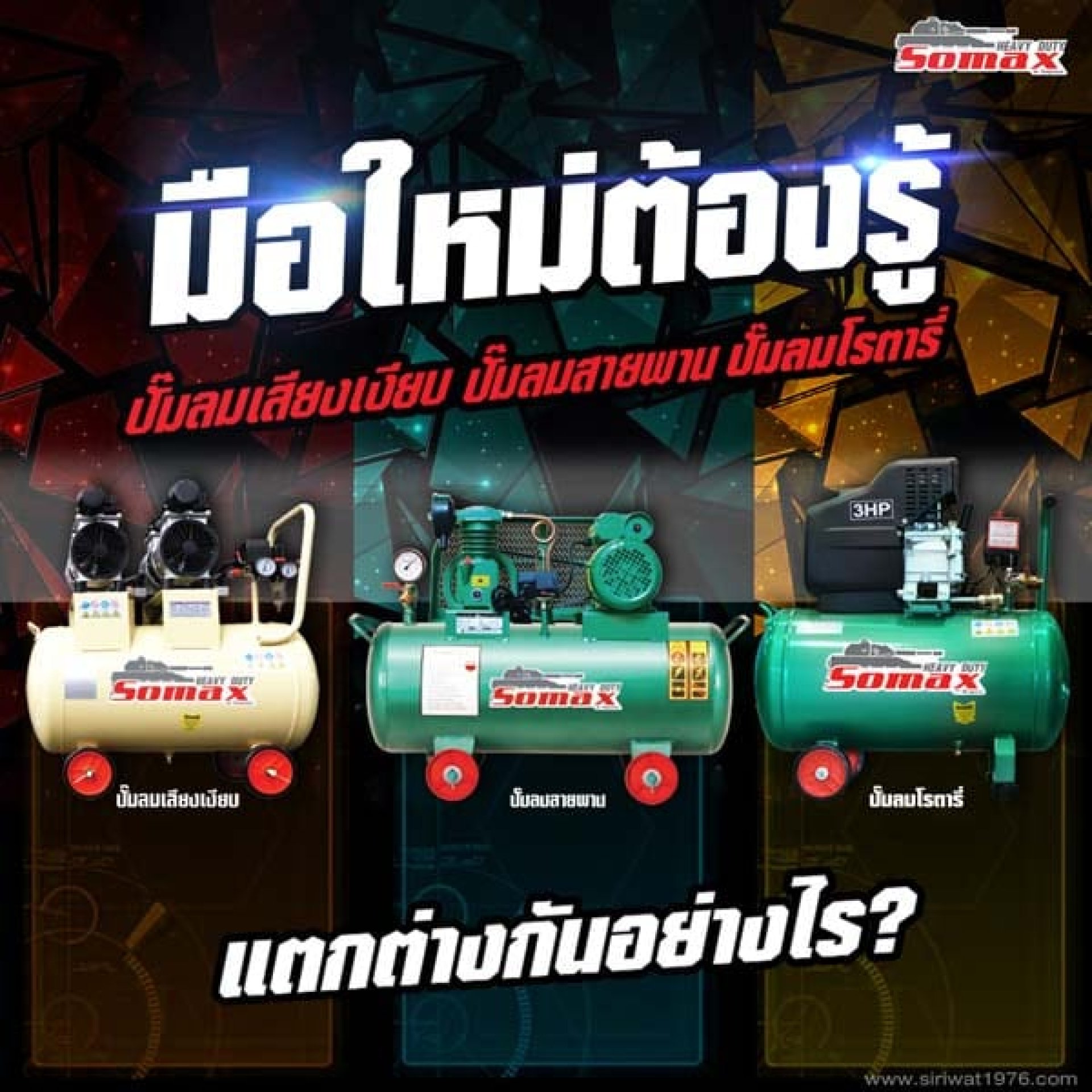 มือใหม่ต้องรู้ ปั๊มลมเสียงเงียบ ปั๊มลมสายพาน (ลูกสูบ) และ ปั๊มลมโรตารี่ (ขับตรง) แตกต่างกันอย่างไร