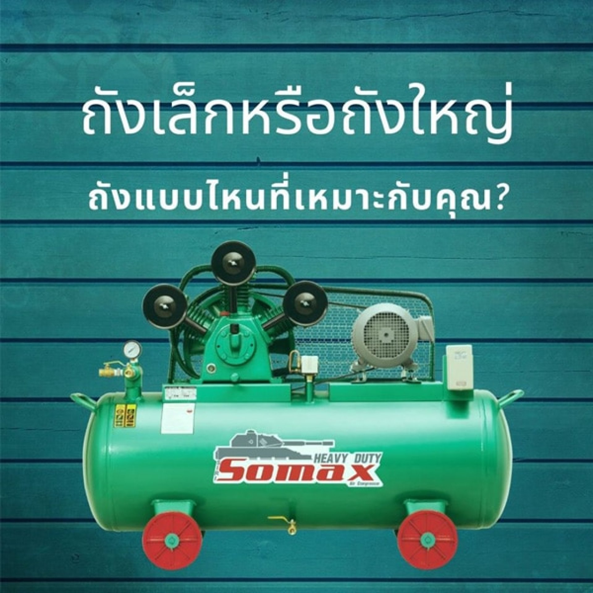 ปั๊มลมที่มีมอเตอร์ขนาดเดียวกัน หัวปั๊มลมขนาดเดียวกัน แต่มีขนาดถังลมที่ต่างกัน ซึ่งราคาก็ขึ้นอยู่กับขนาดของถังลม จ่ายเพิ่มแล้วจะคุ้มไหม หรือใช้เล็กๆไปก่อนดี วันนี้ SOMAX จะมาอธิบายให้ข้อดีและข้อเสียของถังแต่ละขนาด
