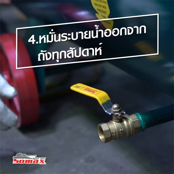 4.) หมั่นระบายน้ำออกจากถังทุกสัปดาห์