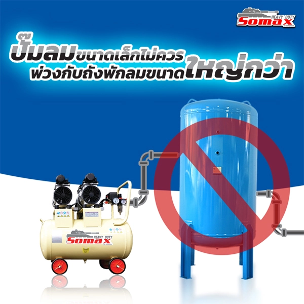 ปั๊มลมขนาดเล็กไม่ควรพ่วงกับถังพักลมขนาดใหญ่กว่า