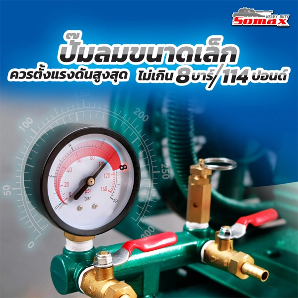 ปั๊มลมขนาดเล็กควรตั้งแรงดันสูงสุดไม่เกิน 8 บาร์/114 ปอนด์