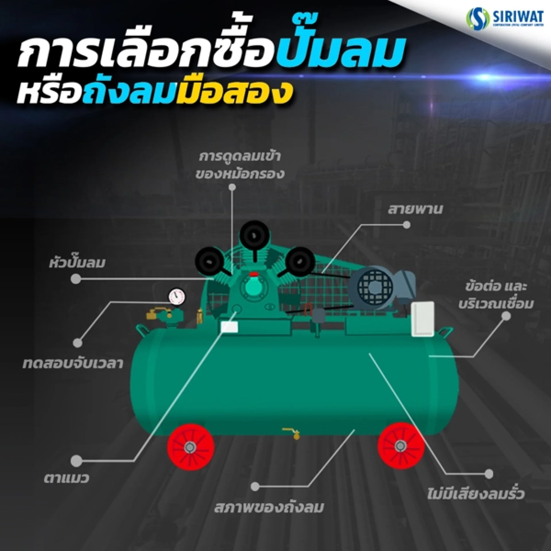 การเลือกซื้อปั๊มลมหรือถังลมมือสองควรสังเกตจุดต่างๆ ดังนี้
