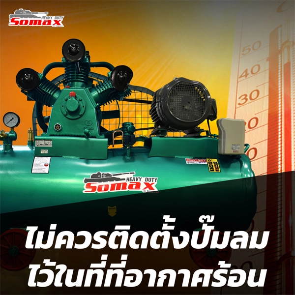4.) ไม่ควรติดตั้งปั๊มลมไว้ในที่ที่อากาศร้อน