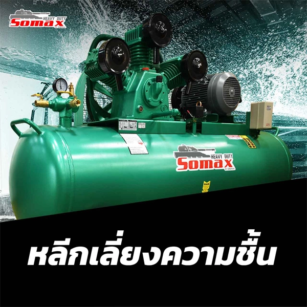 ปั๊มลมเป็นอุปกรณ์ที่ต้องใช้ไฟฟ้าช่วยในการขับเคลื่อนให้ทำงาน เพราะฉะนั้น การอยู่ในพื้นที่ที่มีความชื้น ย่อมส่งผลเสียให้กับอุปกรณ์ไฟฟ้าต่างๆ ไม่ว่าจะเป็นมอเตอร์ เพรสเชอร์สวิทช์ ซึ่งถ้าหากมีความชื้นเยอะ ก็จะทำให้อุปกรณ์เหล่านี้เสียหายได้ และปั๊มลมก็จะมีส่วนประกอบส่วนใหญ่เป็นเหล็ก ซึ่งการอยู่ในที่ที่มีความชื้นก็มักจะก่อให้เกิดสนิมขึ้นตามจุดต่างๆ ไม่ว่าจะเป็นหัวปั๊ม ข้อต่อ สนิมภายในถัง และบริเวณอื่นๆ การติดตั้งปั๊มลมในที่ความชื้นสูงก็จะส่งผลให้มีน้ำค้างอยู่ในถังลมเยอะกว่าปกติ ถ้าหากไม่ถ่ายน้ำออกจากถังลมบ่อยๆ ก็จะทำให้ความจุของปั๊มลมลดน้อยลง ถ้าหากเลี่ยงพื้นที่ที่มีความชื้นสูงไม่ได้ ก็ควรถ่ายน้ำออกจากปั๊มลมอย่างน้อยที่สุดวันละ 1 ครั้ง หรือ 2 ครั้งในกรณีที่ใช้งานต่อเนื่องทั้งวัน