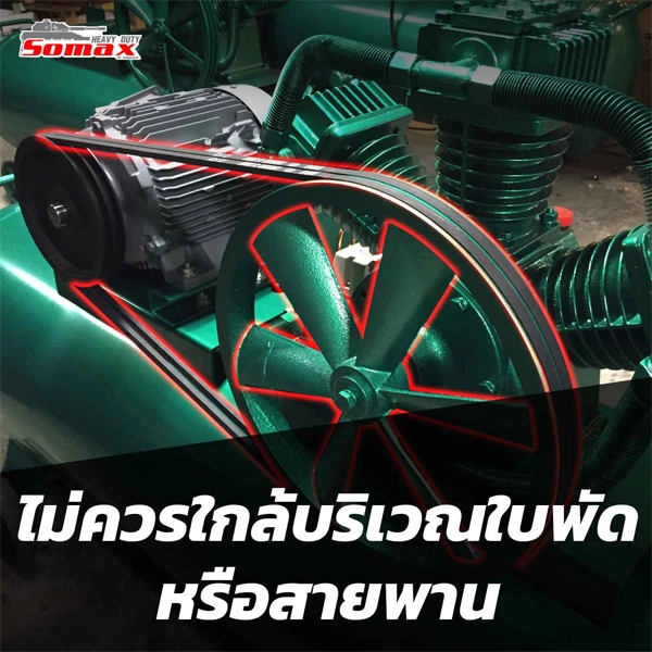 1.) ไม่ควรเข้าใกล้บริเวณใบพัดหรือสายพาน